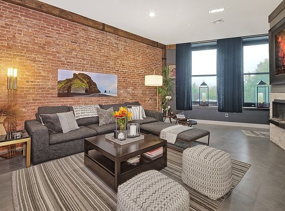 Not a detail has been spared in this meticulous renovation, highlighting the industrial era, with layers of modern finishes. Access granted from a private townhouse style entrance, at first glance one will be fully captivated, then inspired by the expansive living area encompassed by vibrant exposed brick wall lined with rich wooden beams with metal trimmings. Dramatic windows framing the NYC skyline and soaring ceilings allow natural light to illuminate throughout this entertainers paradise. Its amazing use of space includes clever closet designs, storage nooks, and organization systems; finished in gorgeous hardware. Appreciate custom barn doors, moldings, paneling, gleaming hardwood floors, and perfectly positioned decorative lighting inside soho style home. Gourmet kitchen comes with all the ingredients necessary for any inspiring chef to cook up those delicious meals. Generous sized dining area anchors the room for daily gathering or when hosting a soiree. This residence boasts two true bedrooms, two full baths and a generous sized bonus room finished with industrial pipe shelving fixture and built-in storage closets. This abode is the only hidden gem amongst a fully amenitized building including concierge, tremendous amount of open park-like spaces with Manhattan views, indoor pool, sauna, gym, and more. Grab hold of this unique, stylish dwelling which is just one bus stop to NYC.