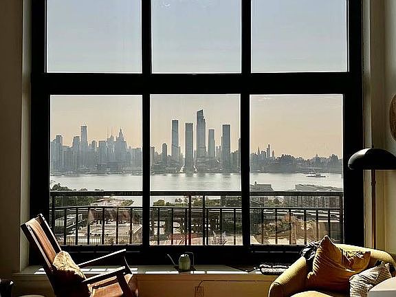 Welcome to this spacious 2BR/2BA home at Gregory Commons, offering million NYC skyline views from your Livingroom window. The unit features hardwood floors, high ceilings, and expansive windows flooding the space with natural light all year round. Built in Central AC, modern appliances in unit W/D and more. in Suit bathroom available in the master bedroom. One extra room can be used as office or extra bedroom. The building has an indoor swimming pool, sauna, gym, community room, elevators, and a 24/7 doorman. Located in heart of Weehawken, Walking to Oak Deli, Fork Hill Kitchen, the reservoir, local dog park and more.