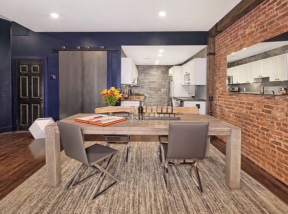 Not a detail has been spared in this meticulous renovation, highlighting the industrial era, with layers of modern finishes. Access granted from a private townhouse style entrance, at first glance one will be fully captivated, then inspired by the expansive living area encompassed by vibrant exposed brick wall lined with rich wooden beams with metal trimmings. Dramatic windows framing the NYC skyline and soaring ceilings allow natural light to illuminate throughout this entertainers paradise. Its amazing use of space includes clever closet designs, storage nooks, and organization systems; finished in gorgeous hardware. Appreciate custom barn doors, moldings, paneling, gleaming hardwood floors, and perfectly positioned decorative lighting inside soho style home. Gourmet kitchen comes with all the ingredients necessary for any inspiring chef to cook up those delicious meals. Generous sized dining area anchors the room for daily gathering or when hosting a soiree. This residence boasts two true bedrooms, two full baths and a generous sized bonus room finished with industrial pipe shelving fixture and built-in storage closets. This abode is the only hidden gem amongst a fully amenitized building including concierge, tremendous amount of open park-like spaces with Manhattan views, indoor pool, sauna, gym, and more. Grab hold of this unique, stylish dwelling which is just one bus stop to NYC.
