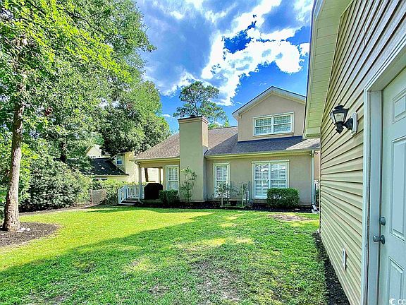 Rare opportunity east of Hwy 17, pristine condition, very short walk to beach, recently remodeled kitchen and master bath, golf cart storage in outside building with roll-up door, formal dining room, vaulted ceiling in living room, fireplace, oversized master bedroom, walk-in closets abound, large loft upstairs currently used as office/study has walk-in closet and attic access. Could become a potential 4th bedroom if needed with erection of wall. Room for a pool in backyard if desired. Ideal traditional style home for primary or second home use without the stairs of a raised beach style awaits you.