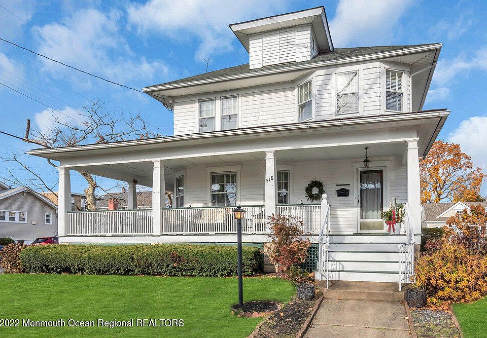 Final and best requested by 12/6/22 @ 12:00 pm - Amazing wrap around front porch greets you & welcomes you into this charming classic home. The home features 4 Bedrooms, 2 baths, large walk-up unfinished attic and back deck with outdoor shower, all on a desirable 50 x 150 CORNER LOT w/ plenty of PRIVATE parking and approx. 2 car garage great for storage, bikes, beach chairs, surfboards etc. This location is near plenty of new construction which makes it an attractive option for either a renovation to make it your own style, new build, or enjoy the amazing charm as it is. You will love the location near Silver Lake, downtown, train to NYC, shops, restaurants + more. Add'l features include steam radiator heat (the best!), butler's pantry, granite countertops & stainless-steel appliances, gas fireplace, pantry space, and beautiful hardwood flooring throughout. The home has been well maintained and offers buyers immediate enjoyment with opportunity for improvements over time. Take action today and secure this rare offering in the north end of Belmar!
