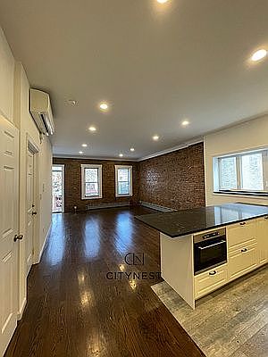 Welcome to your future nest, a newly renovated 2-bedroom apartment w/ a gigantic outdoor terrace located in Bay Ridge. The apartment boasts: A Complete Modern Renovation. Spacious living room with a decorative wall of exposed brick, which is flooded with plenty of natural light via front, side and rear windows (w/ custom blinds) throughout the apartment. Open concept kitchen w/smudge-free stainless steel appliances including a hood range, dishwasher and a built in microwave. Moroccan tiled design backsplash, and porcelain farm sink, adding much charterer to the up-to date design. Modern white kitchen cabinets topped w/ a dark granite countertop generously sized breakfast bar great for a quick bite. Oak hardwood flooring & LED lighting throughout the apartment. Extra large bathroom designed to perfection: modern vanity, subway tiles design, towel shelves, and Two true separate bedrooms with windows and closet space - master bedroom with walk-in closet and a full sized bedroom great for an additional full sized bedroom, home study, nursery or guest room. Ductless air conditioning and heating in each room. Laundry conveniently located in unit. No Pet Policy. Renovations are now complete. A vast array of bars, cafes, restaurants and shops on 86th Street are in immediate walking distance from your new residence, but the R train is a couple blocks away, and/or X27/X37 is a 6-minute commute, which is easy transportation to any further destinations! Welcome home where renovations have been well thought-out and no expense has been spared. Please email or message me for more information about the property, or to arrange for a viewing.