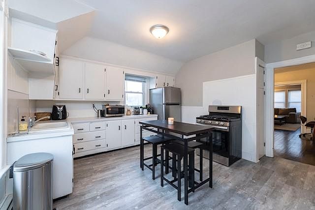 Recently updated 2 bed 1 bath apartment in Elmhurst with updated appliances and beautiful hardwood floors throughout. One guaranteed off street parking spot. Third floor unit with balcony, and free laundry units in basement. Shared outdoor yard space with area for a small raised bed garden. Walking distance to Lasalle bakery, Providence College, and Rhode Island College. Five minute drive to providence train station and 95. Pets will be considered for an additional monthly fee. Utilities not included. Owner pays for water and sewer, tenant pays for gas, electric, and cable and internet if desired. Pets will be considered for an additional fee and pet owners will be completely responsible for any damages caused by pets. Absolutely no smoking on the premises. One off street parking spot. Lease for at least one year. Room for month to month negotiation after first year. Tenants will be responsible for trash, recycling and small maintenance tasks such as changing lightbulbs and smoke detector batteries. Tenants will also be responsible for snow removal if snow is less than 6 inches.