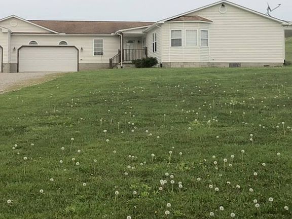 Stunning 4 bedroom, 3.5 bath ranch with a lovely open floor plan with fireplace. A beautiful large kitchen/living area is great for entertaining. Enjoy 3+ car garage with bath. Located on picturesque 3 acres m/with outbuildings. Only 199,000. Make offer! More acreage 5.847ac m/l is available as well with beautiful scenery. (Property outlined on map in yellow and labeled A for the 3ac m/l) 2 minutes to State Route 35 (A&A Truckstop) and 8 minutes to Walmart, sign at Dixon Run Road