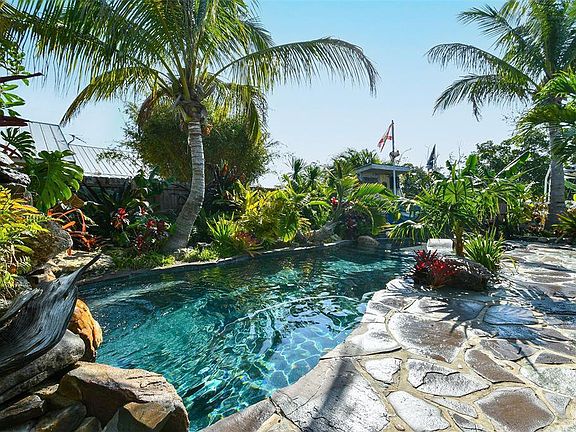 Your private Island awaits you. No, it's not on its own Island but it is located on the north end of Longboat Key. This one of a kind home with lush, tropical landscaping on a canal across from mangroves on Town of Longboat Key owned conservation land has absolute, total privacy--you would think you are on an Island. This turnkey furnished, three bedroom home with two baths has recently been remodeled with an Island theme including completely new kitchen and appliances, upgraded bathrooms, chair rail, 5" floor molding, 7 year old roof and windows, some new flooring, central heat/air only one year old, Murphy bed, plus more. New heated, Pebble Tec, salt-water lagoon pool with custom lighting, rock waterfall and lighted grotto. Outdoor custom-built, cedar Tiki bar, table and lights perfect for entertaining, outdoor shower with hot and cold water, fenced yard with dog run, storage shed and even a child's playhouse with its own solar panels on its roof. There are two boat docks--one with an 8000# boat lift. Located near the beach access and close to all Longboat Key, Sarasota and Bradenton have to offer. All this creates a magical setting for your Island home. Birds, manatees and snook are at your back door. Seeing is believing!