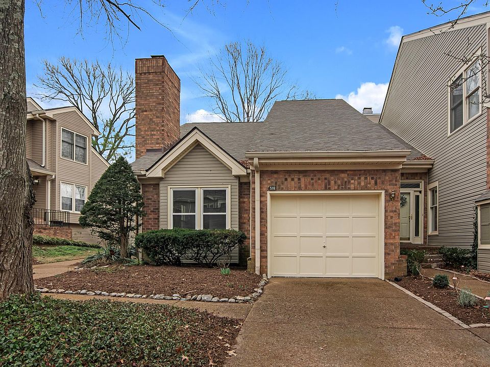 End unit 3 story townhouse in the heart of Green Hills for under $500k! Inviting den with vaulted ceiling, gas fireplace and tons of natural light. Hardwood floors throughout. Entire unit freshly painted. Attached 1 car garage. Remodeled kitchen with custom cabinets and granite countertops. Kitchen and master bedroom open to a newer deck that overlooks tranquil outdoor space. 2 Master suites. Master bedroom on main level and 2nd floor. Flex room upstairs that is ideal for home office or sitting room. Fully finished basement level with walk out door and patio. Walk to pool, clubhouse and tennis courts.