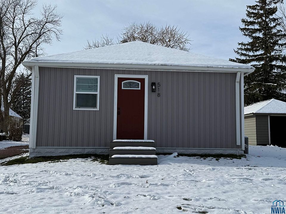 This 2-bedroom, 1 bath move-in ready property has 880 square feet of modern living space. It features a newly updated kitchen with brand-new cabinets and appliances, an updated full bathroom with a tub-shower combination, and new laminate and carpet flooring throughout the main floor. The laundry area is equipped with a new washer and dryer for added convenience. The home has been extensively renovated with an updated high-efficiency furnace and a new central air conditioning unit, along with new insulation, sheetrock, electrical, plumbing, windows and window treatments, and recessed ceiling lights. An unfinished basement provides plenty of additional storage space. Exterior features include a newly developed lawn and a spacious 12x30 shed built in 2022 that offers excellent storage or workshop space and has been freshly painted to complement the new maintenance-free board-and-batten siding on the house. This property provides a turnkey opportunity for buyers seeking a fully modernized home with quality upgrades.