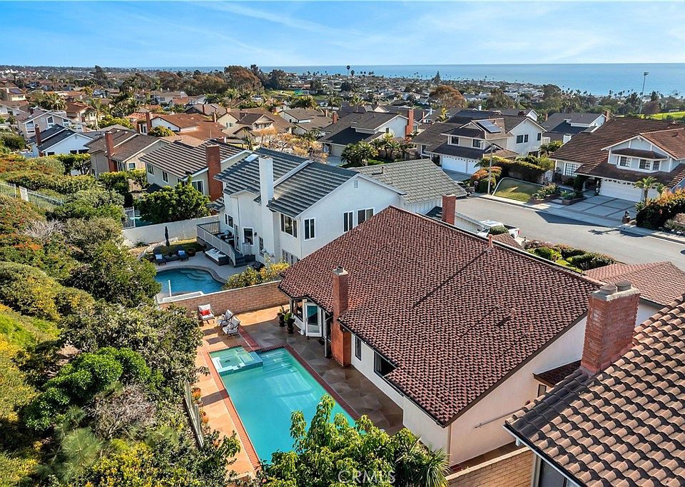 Welcome home to 518 Calle Baranda. This charming single-level-pool home is located in “The Coast” community of San Clemente and situated on a cul-de-sac street, offering soaring ceilings, an open floorplan, an eat-in kitchen that is adorned with beautiful, custom cabinetry, granite countertops and stainless-steel appliances. Both the living and family rooms feature their own cozy fireplaces, each offering a great area for relaxing and entertaining. Boasting three bedrooms, the first bedroom to your left as you enter down the hallway has been expanded to offer a separate entrance and a darling atrium window, draping the room in natural, soft lighting throughout. The second bedroom is nicely appointed with ample room and in close proximity to the full bath, laundry room and Primary suite. As you enter the primary suite you will be greeted with tall cathedral ceilings and an ensuite bath with beautiful views of the resort style backyard, which features a generously sized pool and spa with a wrap-around-deck offering a picturesque space for bbq’s, pool parties, relaxing and having fun with family and friends! Additional features of this home include an epoxy coated garage floor, a newer roof with fully paid for solar panels, a new furnace and a/c unit and newer pool equipment as well. Located just minutes to Downtown San Clemente that is home to world class beaches and surf breaks, boutique shops and fine dining and close to great schools, the Outlets at San Clemente, PCH, 73,74 and the i5 freeway.