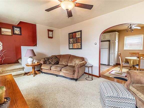 Come and see this well maintained 2 bedroom home on a quiet dead end street. This home welcomes you with an inviting covered front porch. The main floor easily flows from the spacious living room to the open concept dining room/kitchen which offers tons of storage with a built in china cabinet, as well as lots of cabinet and counter space. Upstairs, two generously sized bedrooms with large closets and a full bath. The concrete driveway and one car garage offer plenty of parking while the backyard is a great place to enjoy the outdoors. Welcome home.