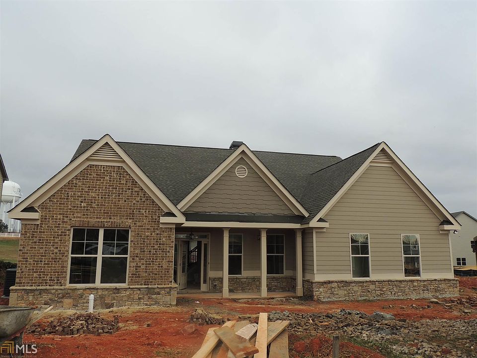 Brand new 5 bedroom RANCH home in a sought after golf course community. Large family room open to the kitchen which features oversized center island, granite countertops and tile backsplash. Separate formal dining room. Huge corner lot with covered porch. Large master suite on one side of the house with 2 bedrooms on the other side. 2 bedrooms with a bathroom upstairs. Wonderful community with great amenities.