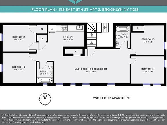Remodeled 4 Beds 2 Baths Apartment in Prime Kensington, Brooklyn - 4 Bedrooms 2 Bathrooms - 2nd Floor - Stainless Steel Appliances - Granite Countertop - Floor-Through Apartment - Hardwood Floors - 4 Large Closets - 12 Windows - East, South & West Window Exposures - Heat & Hot Water Included - Floor Plans Available (see last picture) - Video Tour Available on YouTube (search by address) - No Dogs