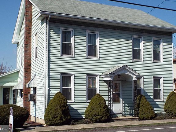 Well maintained 5+ bedroom 2-story in Hegins. Large eat-in kitchen, Carpet Living room, 1st floor Bedroom, Large Laundry/Office plus a full bath with shower make up the main floor of this home. 5 Bedrooms &full bath make up the 2nd floor. Smaller bedroom is ideal for nursery or child's bedroom. Large walk-up attic with loads of storage area. 3-zone heat for main floor 2nd floor & main floor bath & heated back porch on 3rd zone. Basement with one side housing the oil furnace and the other for storage or work area. Detached 2-car garage has pull-down steps to a small storage area plus an attached 2-story workshop with stairs to 2nd floor plus a chimney if heat source is desired in the workshop. Being sold AS-IS.