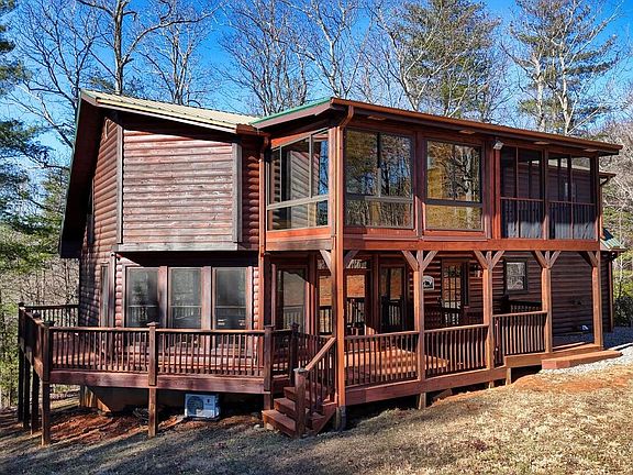This is what you come to the mountains for! Peace, Privacy and Stunning View! Conveniently located just a short drive to town, you'll enjoy shopping, dining, and all the beauty of mountain life. Your new 3BR/3BA home features a stylish mix of wood and drywall and the open floor plan makes it great for entertaining family and friends. The main floor features a kitchen w/granite countertops and stainless appliances and great room with fireplace, from there you step down into a large den with walls of windows to enjoy the view. A guest room, bathroom and laundry round out this level. Upstairs you'll find an open loft area, master suite w/sitting/sunroom letting in lots of natural light and guest bedroom and bath. Both levels boast lots of open decking, screen and open porches giving you ample space to enjoy the outdoors. Plenty of room outdoors for garden or entertainment area.