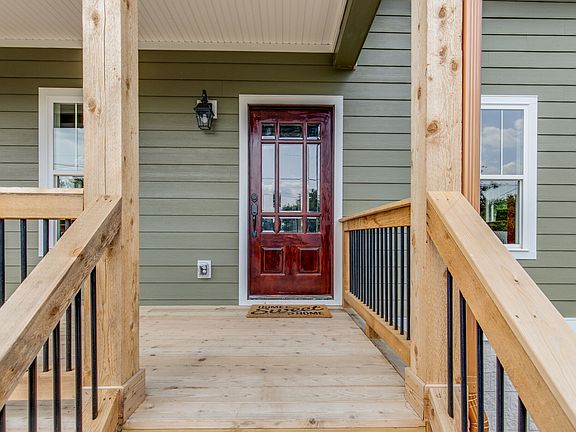 Adirondack inspired home design & details. Rocking chair front porch, beautiful mahogany door, soaring 18' ceilings & cedar framed gas FP that welcomes you into the great rm & open concept kitchen. Custom cabinetry w pull out spice drawers, hidden refuse cabinets, custom door fronts & handcrafted concrete counter, apron front sink & vintage trolly style island. Main level master suite w soaking tub, glass enclosed shower. Cedar & iron staircase, dedicated upstairs office.
