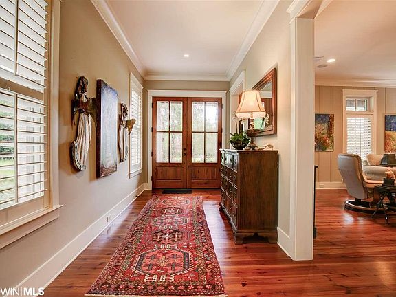 Amazing, charming, New Orleans style home in The Waters of Fairhope. 4 bedrooms, (master down) 4.5 baths, gourmet spacious kitchen, office, heart of pine floors, zoned HVAC, whole house generator, energy efficient heat radiant barrier, detached 3 car garage with walk up massive storage, gunite salt water pool with covered large pool patio, fire pit, fully fenced, front porch and balcony. 8 foot solid wood doors, stainless steel appliances and granite throughout. Tankless hot water heater & 2 water meters. This is a one of a kind home that is move in ready.
