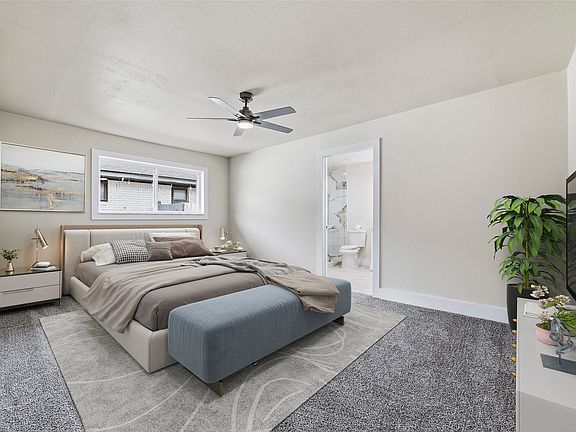 The spacious primary suite is your personal retreat. Indulge in a spa-like bathroom with a freestanding soaking tub, marble-finish shower, and double vanity—a space designed for relaxation and style. Plush memory foam carpet in the bedrooms offers everyday comfort, while the large utility room adds practical convenience for busy lifestyles.