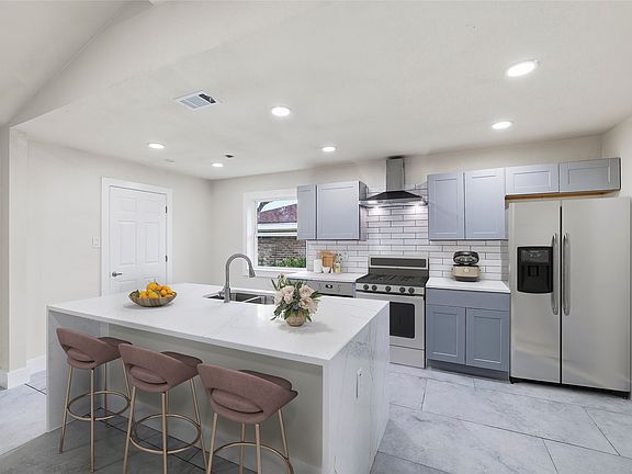Natural light pours through brand-new energy-efficient windows, dancing across the open living spaces and highlighting the fresh ceramic tile floors. The heart of the home, a stunning kitchen features a massive 5x7 island, sleek new cabinetry, and elegant countertops, creating the perfect setting for morning coffee or weekend gatherings. Recessed lighting with adjustable LED and soft-light modes lets you tailor the atmosphere for every moment, from vibrant family dinners to cozy movie nights.