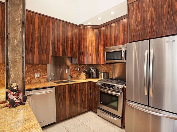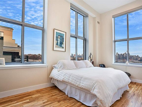 Cross over from the Mecca capital of the world to Gregory Commons with NYC at your doorstep! "Truly" an exquisite one of a kind 3 bed 2.5 baths uniquely renovated with $250,000+ of upgrades. Breathtaking panoramic views of NYC and the river. Exposed high beams hand-honed with open floor plan and kitchen dining table build into counter top S/S appliances. Walnut custom cabinets with self closing feature granite countertops. Built in 30K wall unit with electric fireplace in LR with redwood LED lights for presentation. Auto solar and black out blinds in LR and bed double closets in master solid oak doors and his and her tons of storage! Upstairs bed features secret room as a playroom storage under loft as a panrty master bath with onyx backlit shower and underlit vanity and countertop marble floors and radiant heat hardwood floors and recessed lighting throughout. So many upgrades makes this a unit a real treasure.