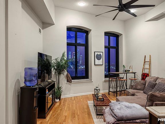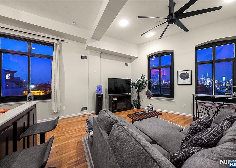 518 Gregory Ave Unit C402 is a 1,197-square-foot condo featuring two bedrooms and two bathrooms. This corner unit boasts 12-foot ceilings and expansive 10-foot windows, offering panoramic views of Manhattan. The residence is part of a full-service luxury building that provides amenities such as a 24-hour concierge, pool, gym, sauna with showers, and lockers. Comes with covered indoor parking for 1 car (right across the street)