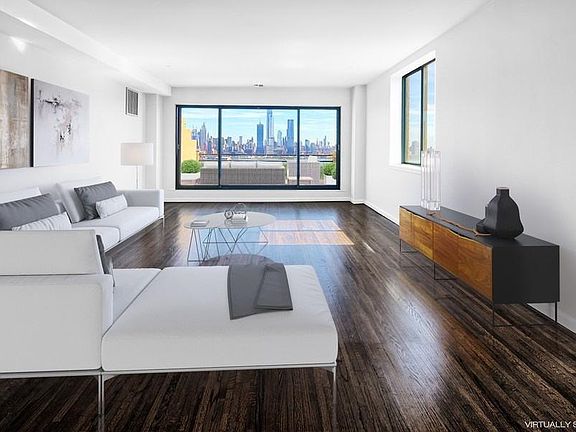 Penthouse Utopia soaring over the River with Private Outdoor Oasis. Peerless Panoramic views of inspiring Iconic NYC Landmarks from Hudson Yards to Freedom Tower & Beyond are yours in this One of a Kind 2 Bedroom 2.5 Bath Southeast corner duplex. An Idyllic location, positioned atop the Bluff in Prime Weehawken, at the coveted Southeast corner of Gregory Commons condo complex. Entertaining is a Dream on your huge 200+- sq. ft. corner Balcony, conveniently equipped w/gas, water line; one can easily create a summer kitchen-whether its al-fresco dining, gardening or a relaxing retreat. Offering 1500+-sq. ft. of Tastefully Designed Luxury Living space on 2 Levels. The Perfect Penthouse full floor, open concept layout delivers brilliant sunlight from 3 exposures & walls of glass. A Grand impressive entrance Gallery w/ luxury guest 1/2 Bath opens to the Living/Dining space & adjoining Balcony. A contemporary stylish design open Chef's kitchen w/ Gorgeous natural Quartz counters & super-sized Island for guests to gather, round off the 1st floor. On the 2nd floor find 1 Guest Bedroom w/ en-suite luxury full Bath. The East facing Fabulous Master Bedroom Suite offers a walk-in-closet, Carrara Marbled Bath w/ floating vanity & Jacuzzi tub. Guaranteed to Impress! Highlights: Espresso hardwood flooring thru out, abundant closets, central HVAC, New energy efficient windows; full size Washer/Dryer. RENT Includes: Water, elevator access to 1 car heated Garage Parking+Amenities: 24hr concierge, New Resident's lounge, Indoor Pool, Fitness ctr., sauna, Courtyard; Maintenance on site; storage avail. for a fee. SORRY NO PETS of any Kind! NO Short Term Rental Permitted. Tenant Pays: Heat/Electric; Gas; A/C; Move in fee+Broker Fee. Discover Gregory Commons Gated Luxury complex. A stellar location that offers a Dream Commute to NYC-only 2 miles to Port. Auth. A short stroll to fabulous Shopping, Dining, Eateries, Whole Foods and Vibrant Waterfront Lincoln Harbor; NY Waterway Ferry service, Historic Reservoir Park et al. RENT Includes: Water, elevator access to 1 car heated Garage Parking. Amenities: 24hr concierge, New Resident's lounge, Indoor Pool, Fitness ctr., sauna, Gated Courtyard. Storage avail. for a fee. Guest Parking is avail. Tenant Pays: Heat/Electric; Gas; A/C; Non-Refundable Move in fee+Broker Fee applies. SORRY NO PETS of any Kind! NO Short Term Rental Permitted. 2 yr lease preferred.