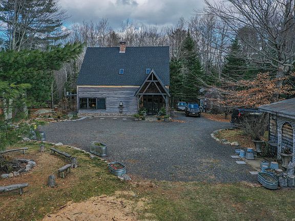 Properties like these don't come around often. This enchanting cabin-esque home is situated on 30 acres of gorgeous woodland complete with a babbling brook and trails for walking and enjoying all the wildlife this unique part of Maine has to offer. The sundrenched home boasts a beautiful entrance that welcomes you to this cozy hideaway with a stone patio off the dining room and large loft bedroom suite with a deck off the second story to enjoy the breathtaking views while enjoying your morning coffee. There are a few finishes that need to be completed,, there is a healthy stack of wood to get you or your contractor started when you're ready to finish the walls and ceiling, along with the finishing of the tub/shower in the bathroom. The home is well insulated and has an on demand hot water heater and Renai heat, but the tubing has been run in the foundation for radiant heating, should you choose to install a boiler. The land is great for gardening and you have the opportunity to cut your own firewood. In addition, this unique property offers an outdoor firepit, two bedroom septic system and two detached outbuildings. This is truly a hidden gem for the right buyer looking for a tranquil home nestled in the woods, yet only three miles from access to a major road and sweet village to connect with.