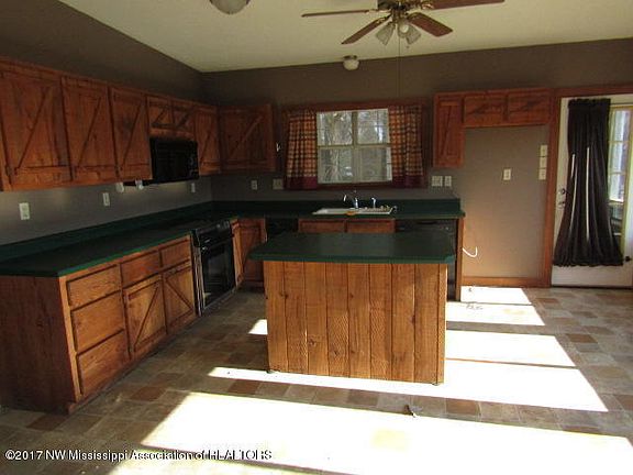 Property described a ''Barndominion'' left side is 6 stall horse barn with storage area, the right side is living quarters. Unique property with double carport, play area for children, rustic interior appearance. Living are has living room dining combo, half bath in hall and shared master bath.