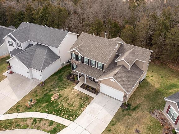 Home is only 2 years young! Fully updated, freshly painted 2 story home with 4 bedrooms, 2.5 bath home is MOVE IN READY!! Home is located on private cul-de-sac backing to trees for privacy. Walk in to the inviting open floor plan with upgraded wood laminate flooring on main level and tons of natural lighting. You will love cooking in the LUXURY kitchen which features extra large island with breakfast bar and pantry, opening to the breakfast room and family room. Kitchen boasts 42" tall cabinets, double wall oven, and stainless steel GE appliances. Formal living room and dining room provide plenty of space to entertain. Laundry and powder room on main floor. Upstairs is the master suite with a walk in closet, separate tub and shower, and double sinks, as well as three additional bedrooms and a hall bathroom. The walkout basement has rough in 3/4 bath and sump pump. Enjoy the sounds of nature on the new deck on lower level. Ring doorbell with cameras included with sale.