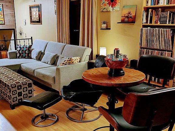 Eclectic, inviting mid-century modern with fresh touches, convenient to downtown! Vaulted ceiling, abundant light in open upper level living spaces. Comfortable lower level den; Multi-use lower level entry; office adjacent to den could be repurposed as small 3rd bedroom. Walk to Dix Park, Pullen Park, NCSU, Centennial Campus. Convenient to Downtown, Cameron Village, Beltline, Western Blvd, Greenway.