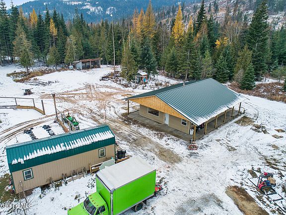 NEARLY NEW 3BR/1BA SINGLE LEVEL HOME ON 11 PICTURESQUE ACRES! Built 2020, 2,400 sq ft, open concept floor plan, high ceilings, main level living with handicap accessibility, large windows for optimal views, laminate flooring throughout & reverse osmosis water filtration system. ICF (insulated concrete forms) built house with wrap around concrete covered patio. 12X32 Additional dwelling unit (ADU) used for storage. Large garden area, two ponds, chicken coop, well house & sewer RV hookup (up to 4 RV's are allowed on property). Beautiful setting cleared, nicely treed & very close to State Land (neighbor backs State Land). Desirable location North of Sandpoint and only 6 miles to McArthur Lake with boat launch & dock!