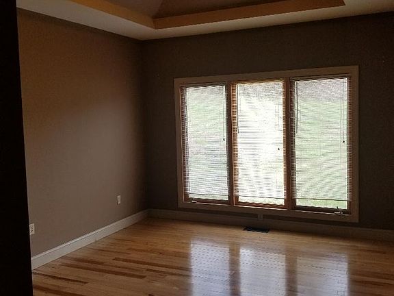 Open floor plan with hardwood & tile flooring, stainless steel appliances in the kitchen, laundry room, master suite, trey ceilings in the living room, deck to enjoy wooded back yard view. Private location. NO PETS and a Non smoking home. Home is on approx 5 acres. Tenant must maintain approx 3 acres of mowing. Must be able to prove 3x the monthly rental amount in income each month. non smoking home and No pets allowed. Tenant is responsible for the lawn care.
