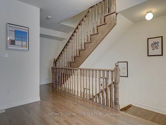 Almost Brand-New, Less than a year old Townhouse with 3 Bedrooms, 2.5 Bathrooms. Hardwood Flooring On Main And Lower Floor. Spacious Open Concept Living Room Combined with Dining And Easy Access To Balcony To Entertain Yourselves Or Your Guests. Modern Kitchen W/ Spacious Pantry. Master Bedroom Has 3-pc Ensuite, Separate His/her Closets And Walk-out To Private Balcony. Good Sized 2 Bedrooms Share a Common Bathroom W/Bathtub. Flex Area On Main Floor Which Can Be Used As Media/Office Room. Family-Friendly Community. 2 Minutes Drive To Hwy 401, Plazas, Parkette, Close To Lake, Schools, Public Transit Etc. Costco, Home Depot, Walmart, several restaurants, Hospital, medical offices, Dentist, 5 mins drive to lake, parks, schools, community recreation Center minutes away. Granite countertops, hardwood flooring on main floor and 1st floor with matching stairs, all 5 appliances, cold room in basement, upgraded kitchen sink with faucet, lots of windows, upgraded standing shower with beautiful glass doors, balconies. Garage with 2 remotes.