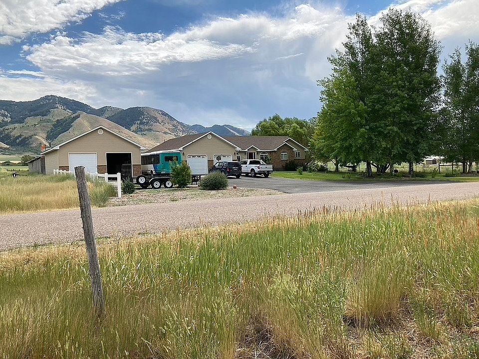 PRICE REDUCED ON THIS 5 acres of Quiet and Private COUNTRY LIVING!! Awesome views of Baldy Mountain, Sherman's Peak, and Lightning Peak. Enter the air-conditioned home through a spacious entryway. The formal living room has vaulted ceilings and a fireplace in the corner. The Kitchen has a Center island with lots of counter space for prepping meals. Enjoy your company in the Formal dining room off the kitchen or Step out onto the large deck for relaxing in the evening or visiting around the fire ring in the gazebo. Downstairs is another fireplace, a large family room, and a small den/office in the hall. Walk out to a secluded and private patio. Huge, heated shop with 2 tall doors. Plenty of space to work on your projects. Out back is a garden spot, raspberry patch, two corrals, and a lean-to that has plenty of room for hay, stalls, and storage. Chicken coop or small animal barn, extra storage shed and a fully fenced pasture for the livestock. All with a view of the majestic mountains. Mature shade trees around the home. Automatic sprinklers. Generator wired in for power outages, Swing set is included.