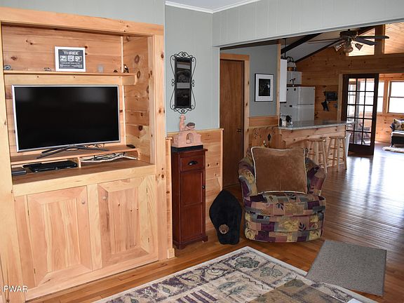 Rustic Country Charmer - Tree house SettingSituated on a high private parcel, this unique country getaway offers 3 bedrooms and 3 full baths with a master suite with views from its private balcony. Open layout with large open kitchen with breakfast counter. dining / living area with cathedral ceilings, beautiful oak floors, and brick fireplace. glass enclosed porch with forest views, warm rustic family room with t&g wood ceilings and walls. open deck, circular drive and partial basement., Beds Description: 2+Bed1st, Baths: 1 Bath Level 1, Baths: 1 Bath Level L, Eating Area: Dining Area