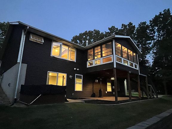 Beautifully updated inside and out. The main level offers three bedrooms with two bathrooms. The home has a large open kitchen with see through fireplace to the living room. Quiet neighborhood, great yard along with an additional heated detached garage. Additional features include: stone patio with firepit, three season room with gas woodstove, patio/decking from the walkout basement. Basement is professionally finished with a large rec. room, bar area, bedroom, bathroom and dream closet/laundry area. Additional photos will be added.