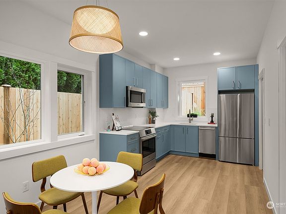 Quiet neighborhood and fabulous location in Phinney Ridge. Restaurants, shops, bars, Green Lake & Woodland Park just moments away! Fully enclosed fenced yard! EV-Ready parking! Both bedrooms are Ensuite. Primary suite offering dual-sink vanities, classic bath finishes, and a spacious walk-in closet. Beautiful blue kitchen cabinets w/sleek white penny tiled backsplash makes for a bright colorful start to your day. Schedule your tour of this stand alone unit today!