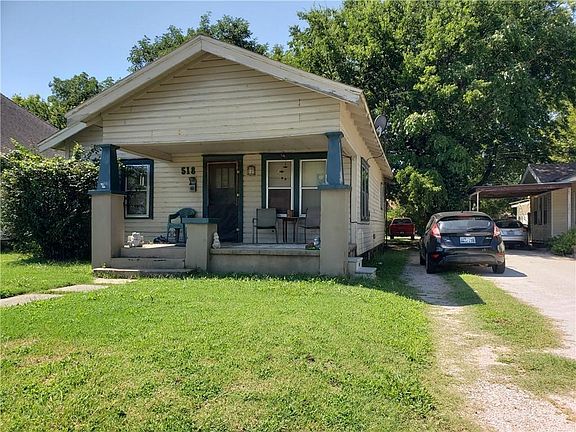 Craftsman bungalow charm! This house has 2 bedrooms, 1 bath, and an office or breakfast nook in the kitchen. Craftsman columns and bookshelves divide the living room from the dining room. Refrigerator and range included. Updated central heat and air unit has a 2 month old compressor. Add your choice of carpet and paint to remodel this house needing some TLC. There is a shared entrance, but separate driveways. Avoid traffic by pulling through your driveway to the alley access behind. Fenced backyard and front porch has plenty of room to rest and relax!