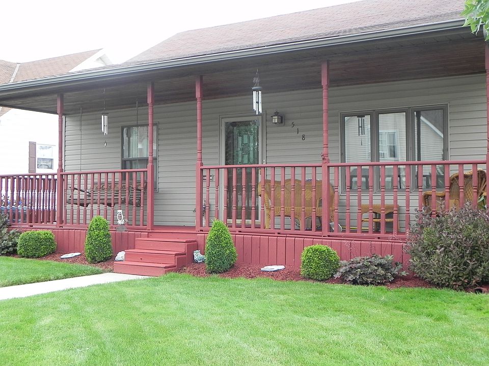 Home consists of 4 bedrooms, 2 full bathrooms, laundry room, kitchen, dining area, living room, and family room. It also has a stained front porch and rear deck, as well as a concrete rear patio. Large 2 1/2 car garage in the back is perfect for two cars and additional supplies, plus is approached with a concrete drive from the alley. Home comes with newer stainless steel appliances (fridge, range, microwave, and dishwasher), as well as a front loading washer and dryer. The children's playset in the back yard can be included in purchase if buyer so desires. New water heater as of 2015, as well as updated exterior sewer line.