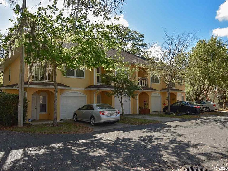 Immaculate 2 bed/2.5 bath condo located close to Uf campus, Shands & Oaks Mall area. The first floor includes a gorgeous kitchen with oak wood cabinets & granite countertops, a conveniently located separate panty, a utility room w/ washer/dryer hookups, a half bath & a large 1 car garage with auto-garage door opener & insulated garage door. Lastly, theres a spacious Greatroom/Dining room with high ceilings and crown molding. The French doors lead to a small grilling patio outback. The entire first floor is tiled. Upstairs youll see Two Master suites, each with their own huge closets and impressive bathrooms with granite countertops. In the front bedroom,theres a private balcony & also attic storage in the walk-in closet. There is also a security system installed. It shows great, is in excellent condition & is in a great location!