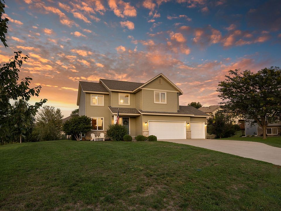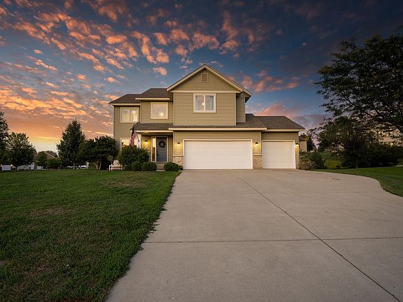 Welcome to this custom two-story home on a desirable cul-de-sac lot in Elko New Market. With an open concept design, this 4 BD, 3 BA home offers great entertaining & living spaces & boasts many recent updates including new flooring throughout, quartz countertops, & reverse osmosis water filtration system. The inviting main level features a spacious kitchen w/ stainless steel appliances & walk-in pantry, along w/ a sun filled family room with custom fireplace & built-in shelving. Upstairs, you'll find 3 beds, a large loft area, & an upper-level laundry for convenience. The owner’s suite is a true retreat, complete w/ large walk-in closet, vanity area & a private bath w/ double-sinks & new flooring. The finished LL offers a huge rec room & 4th bedroom for additional living space & guest suite. The private lot & custom deck w/ pergola provide ample space for outdoor gatherings w/ grilling, dining, & sitting area & capabilities for TV screen & projector. Close to downtown & I35.