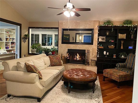 Gorgeous home conveniently located within walking distance of shopping, restaurants and quick access to I-35. This property features a large living area with tall slanted ceilings and fireplace providing a great place to relax. Its master bedroom easily fits a king bed, two night strands and dresser, The home has updates that you are sure to love. Such as, updated wood flooring and tile throughout, granite countertops in the kitchen and bathrooms, beautiful stainless steel kitchen appliances, including double ovens, and barn doors recently installed for the laundry room and both bathrooms! Outside you will find a large patio along with new fencing and gutters with gutter guards. Seller is licensed Realtor.