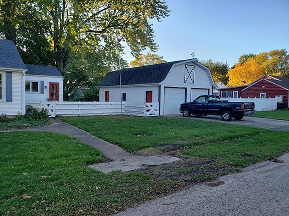 3 bedroom with possibility of 4th bedroom. Family room could be converted back to a bedroom (by putting doors back on). Large eat in kitchen with plenty of cabinets (couple cabinets have glass inserts to showcase special dishes). Separate dining room with unique ceiling and some stained glass touches. Full bath on main floor. 3/4 bath upstairs has standup shower. Livingroom features hardwood floors, beamed ceiling and wood burning fireplace. First floor bedroom. 2 bedrooms upstairs. There is a floored dormer attic room upstairs. Newer siding/roof on house. Huge oversized 2 1/2 car garage with plenty of storage in back for workshop and a walk up fully floored attic for plenty of storage or a studio. Nice corner lot walking distance to 2 separate schools. Close to shopping, restaurants and Metra train. Don't miss this one!