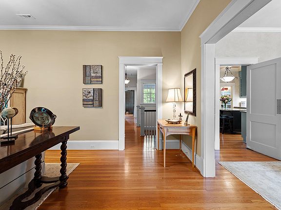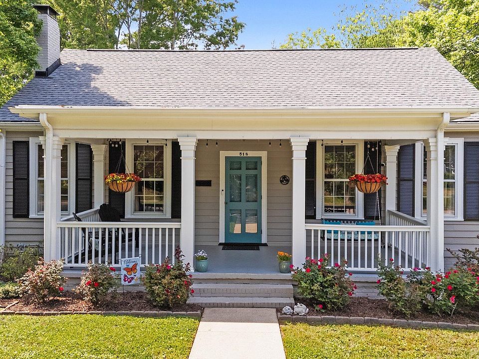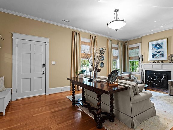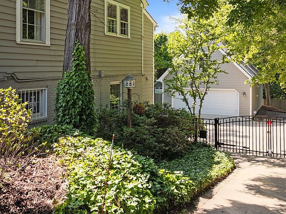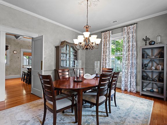This is a one of a kind find in the heart of Wake Forest, walkable to downtown, impeccably maintained, beautifully renovated. The front porch with swing welcomes you! 10' ceilings grace the main floor. Enter and you will fall in love with the formal dining room, large living room with wood burning fireplace, updated kitchen with beautiful cabinets, premium appliances including 5 burner gas range, hood, built in fridge, beverage fridge, microwave, dishwasher. There is under cabinet lighting, tile backsplash, granite counters and a coffered ceiling. Don't miss the walk in pantry. den, bedroom & full bath. The lower level boasts 3 other bedrooms plus an office/flex space. One of the bedrooms is being used as a huge closet space with custom closet design. Hardwoods flow throughout most of the home. Designer paint touches in several rooms. There is also a large unfinished utility room where the laundry hookups are that offers great storage or an exercise space. There is a screened breakfast porch off the kitchen and a lower deck. An oversized , fully insulated, detached garage with finished space above with heating/ac units was added in 2008 with permit, however the renovations/upgrades in home & to deck were done by professional contractors but not permitted. Home has gutter guards, recirculating pump for continuous hot water, filtered water at kitchen sink. The 449 sq ft in detached note in mls is finished space above garage. There is an electric gate on the driveway that leads to the detached garage and fenced yard. The crawlspace was encapsulated in 2012.There is baseboard heating in hallway on lower level but not used. Storm door & storm windows. Unknown as to why there is a discrepancy in sq ftge from mls as these owners have not added/finished any additional interior space. Alarm system, washer and dryer do not convey.