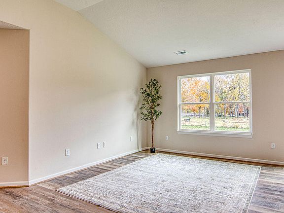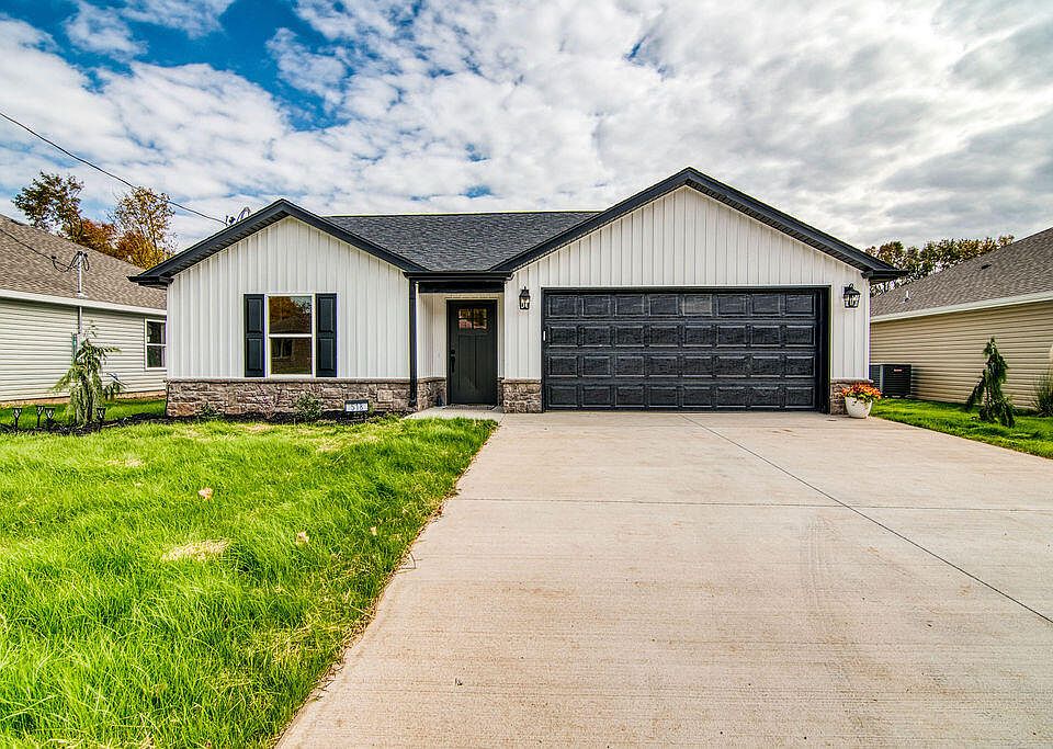 This brand-new 3 bedroom, 2 bath ranch-style home offers the perfect blend of farmhouse inspiration and modern comfort. The open floor plan features tall ceilings, tons of natural light, and a seamless flow from the dining area to the spacious living room. The kitchen is light and bright with granite counters, stylish cabinetry, and a patio door leading to the backyard, ideal for entertaining or relaxing.Luxury vinyl plank flooring runs throughout (no carpet!), while neutral paint tones create a fresh, move-in ready canvas. The private primary suite includes tall ceilings, a walk-in closet, and a spa-like bathroom with a modern vanity. Two additional bedrooms share a convenient full bath with a tub/shower combo near the entry.With thoughtful design, quality finishes, and an inviting atmosphere, this home is ready to welcome its first owners!