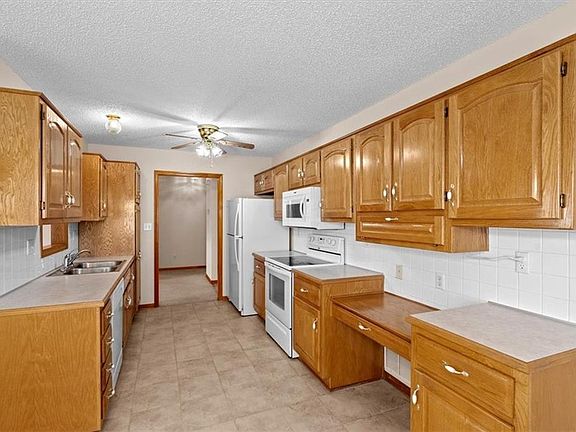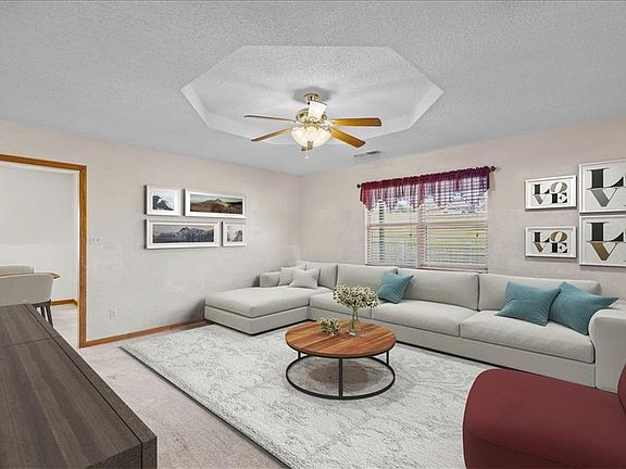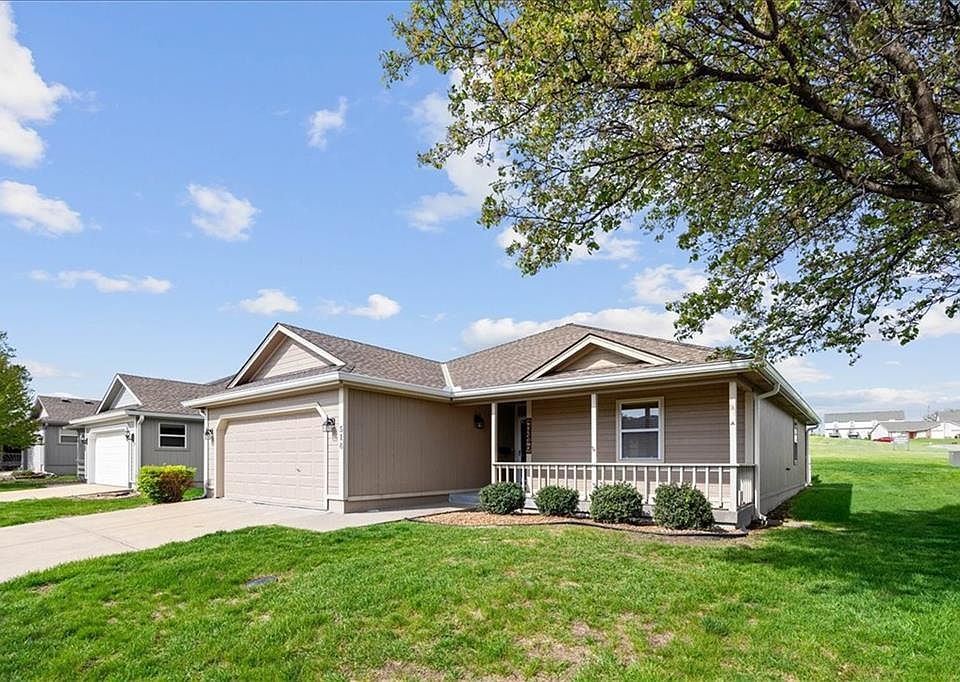 Loads of natural light flowing through the home. The second bedroom is set up wonderfully for an office. The bright enclosed sunroom is perfect for house plants or a quiet reading room. The kitchen has a large pantry cabinet with rollout shelves. The wonderful corner lot is just steps from the club house where you can enjoy social activities like dominos, cards, ladies and men's group, holiday parties and more! The garage provides a slope entrance on the concrete slab into the home (no stairs!). Built-in shelves line both sides of the garage for extra storage. Enjoy the evenings on the patio in the backyard or on the porch, where you can say hello to your neighbors as they walk by. Take a short walk to the subdivision pond and fish or eat lunch at the picnic table. The HOA provides lawn mowing, snow removal, exterior painting of the house every 12 years (scheduled to be painted next year), yard care, gutter maintenance (just replaced), trash pickup, access to activity center and monthly newsletter. Homes in this subdivision don't last long - don't miss your opportunity to live in one of Raymore's favorite 55+ communities!
