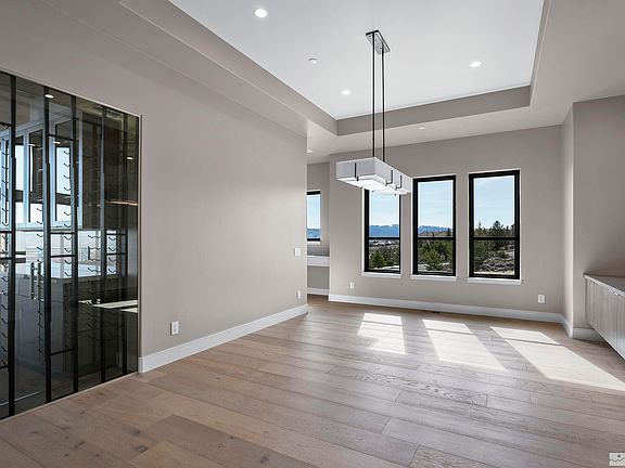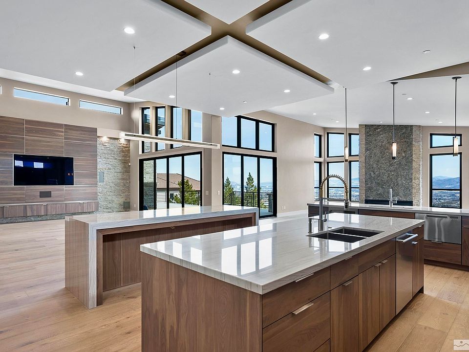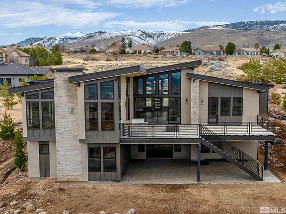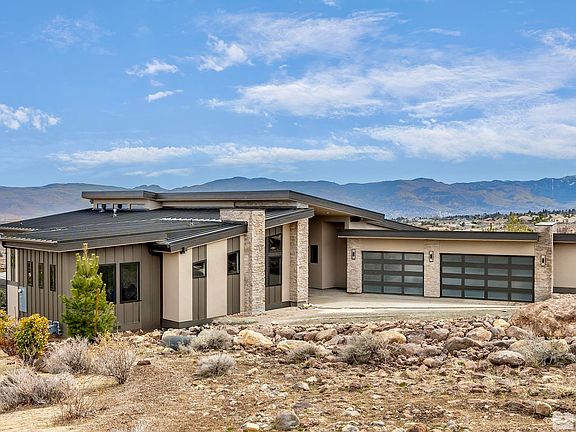 BRAND NEW custom home in Arrowcreek! Spacious main level with soaring ceilings opens to sweeping city, valley, and mountain views. Expansive kitchen features two massive islands, solid walnut cabinetry and adjoining wet bar with temperature-controlled wine wall. A luxurious primary suite features spa-like bath with heated floors, towel warmer, zero threshold oversized shower, and a unique exquisitely finished vanity which blends both porcelain and quartzite slabs., Everything is in place for convenient single-level living. With over 4000 SF, the main level has 3 BR’s, 3 ½ baths and stacking patio sliders providing a seamless transition to the 750 SF outdoor deck with porcelain pavers, natural gas fire table and built-in BBQ. Lower level has a rec room, kitchenette, 2 BR’s, 2 baths, 2nd laundry and 441 SF unfinished storage room with concrete floors and egress windows NOT included in sq. footage! Garage is finished with high-end epoxy floors, built-in storage cabinets, electric car charging station (240 volt) and battery back-up belt drive openers. All construction was completed with the highest quality materials including extensive slab counters and splashes, slab fireplace face, shower bench seats and BBQ top. Four built-in flat screen TVs with complete home theatre and audio speakers are ready to go. Professional appliance package includes 4 refrigerators, 3 dishwashers, built-in espresso machine, and both French door and standard pull-down Thermador ovens. Modern European smooth wall texture, contemporary glass & iron railing, 9.5 width French white oak floors, Hubbardton Forge light fixtures, Hansgrohe plumbing fixtures, complete central vacuum, water softener, fire sprinkler, and security systems are in place. Baths and laundry have durable porcelain tile floors with pre-sealed grout for long-term easy maintenance. Interior comfort is enhanced with an upgraded insulation package and 96%+ energy efficient furnaces with 3 separate HVAC zones and programmable touch screen W-Fi Nest thermostats. Transitional styling with neutral, warm tones allows buyers personal taste and color selections to shine. Exterior finishes include 100% metal roofing, Low-E insulated Anderson windows and steel rain gutters. Complete landscape and warranty by general contractor licensed in the State of Nevada for over 37 years included. Don’t miss this rare opportunity! Homes with this style and quality aren’t available often. Additional photos coming soon!