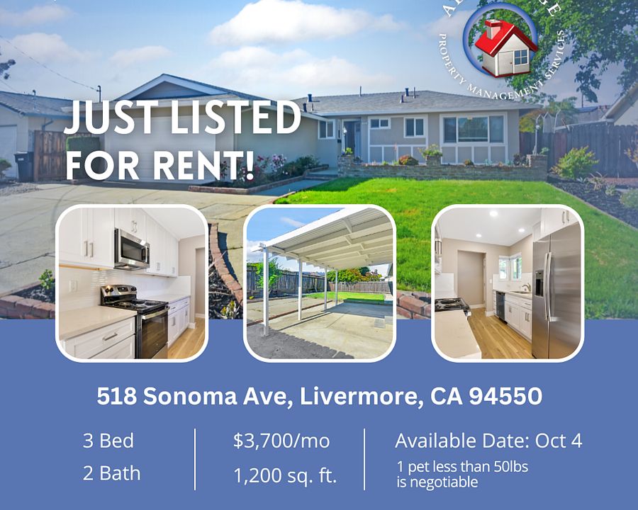 Come to see this newly remodeled 3 bedroom, 2 bathroom, 1,200 sq. ft. single story home located near Granada High School. The home has new laminate flooring throughout. The kitchen has new appliances and ample storage. The master suite features a large walk-in closet and a beautiful bathroom with a walk-in shower. The property is complete with a large backyard and a 2-car garage. Available for move-in on October 4, 2025 Rent: $3,700.00/month Security Deposit ranges from $4,625.00 - $7,400.00 unless you qualify for our zero security deposit option provided by Obligo. Applicants that do not meet all the Basic Criteria, but exceed the Minimum Criteria, may be approved with a higher security deposit. If you join Obligo, you will not be required to pay a security deposit! Minimum Lease Term: Through April 2026 Preferred Lease Term: 18 months Pet Policy: 1 pet less than 50lbs is negotiable with a $500/pet security deposit increase and a $30/month pet admin fee. Applicants with pets are required to submit a pet application through a third-party pet screening service at https apms. Refrigerator: Included Washer/Dryer: Hook-ups available Gardening: Tenant responsibility Parking: 2-Car Garage spaces Utilities: All utilities are Tenant responsibility Showings are available by appointment only. Schedule a showing online by clicking the Schedule a Showing link. The property is professionally managed by Advantage Property Management Services. Leasing Contact: Michelle Cowley (DRE# 01924303) READ THIS IMPORTANT INFORMATION BEFORE YOU SCHEDULE A SHOWING There is a $50/adult non-refundable application fee and ALL adults residing in the property must apply. We will (1) verify your identification; (2) check your credit report, unless you receive a Government Rent Subsidy and request to provide verifiable alternative evidence instead of a credit report no later than when the application is submitted; (3) verify your household income and employment, if applicable; and (4) verify your rental history with previous landlords. Most applications are processed in 2-3 business days from the date we receive a completed application and all supporting documentation. Security Deposits are calculated using a risk-based model. Applicants who meet all the Basic Criteria may be approved at the advertised security deposit amount. Applicants who do not meet the Basic Criteria but exceed the Minimum Criteria may be approved with a higher security deposit, not to exceed the legal maximum. We offer a security deposit-free option for qualified tenants using Obligo billing authorization technology. Security Deposits for active-duty military and properties subject to AB12 cannot exceed 1x the rent. Prior to move-in, proof of a current renters insurance policy with APMS listed as an Additional Interest and coverage of at least $300,000 for personal liability must be provided. Please DO NOT APPLY if your credit score is below 650, your household income is less than 2.7x the asking rent, you have ever been evicted, you have negative rental history, or your pets do not comply with this propertys pet policy. If you have a Government Rent Subsidy and elect to provide verifiable alternative evidence of your reasonable ability to pay rent instead of a credit report, you must inform APMS when you submit a rental application. Failure to notify us at this time may disqualify you from participation in alternative verification. We will provide a list of required documentation after we receive a request. All documentation must be provided within 48-hours. Contact us to learn more about this process and the required documentation. All verifiable sources of income will be considered. Pursuant to CA Gov. Code 12955(o), the income multiple is based on the amount of rent that will be paid by the Applicant (not the total rent amount) if the Applicant has a rental voucher or other housing subsidy. To help ensure all residents understand our animal policies, all Applicants must submit an animal application at https apms. All Information Deemed Reliable But Not Guaranteed. APMS is not responsible for content published by third-party listing websites (i.e. Zillow, Trulia, Hotpads, etc). Central Heat/Air Pets Allowed Refrigerator Included Washer/Dryer Hookups