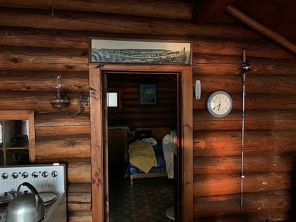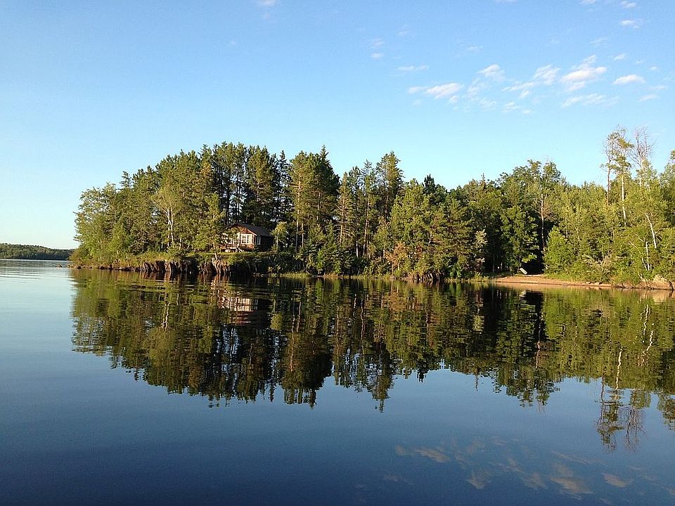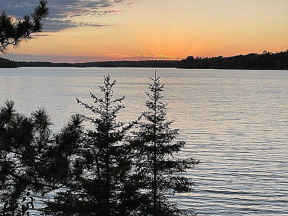 1920's log cabin on Fall Lake, 2.3 acres,300 ft shoreline, west facing point with sand beach, sauna, shed, mature trees,10 minutes from Ely, 1 mile down private gravel road, boundary waters lake 7 miles long. no septic or well.