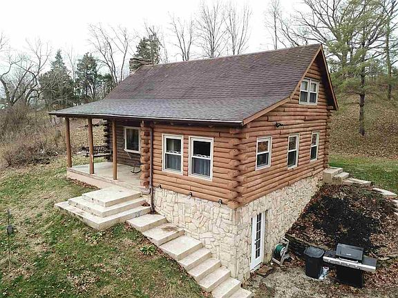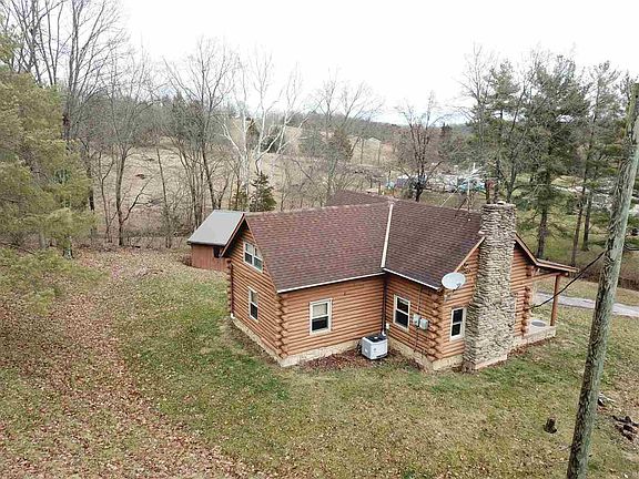 3 bedroom log home on 1.39 acres with the ideal mix of rustic and comfort. Quiet and private setting compliment this charming home. The great room has 2 story cathedral ceiling and a stone fireplace with a large stone hearth. The open concept living area opens to an equipped country kitchen...charming with wood cabinets, island and Corian tops. Gorgeous 1st floor bathroom with jetted tub and heated tile floors. Finished walkout LL. Enjoy life from the covered porch complete with swing. Detached 2 car garage. Don't miss out on this super-affordable log home - it is a nice one.