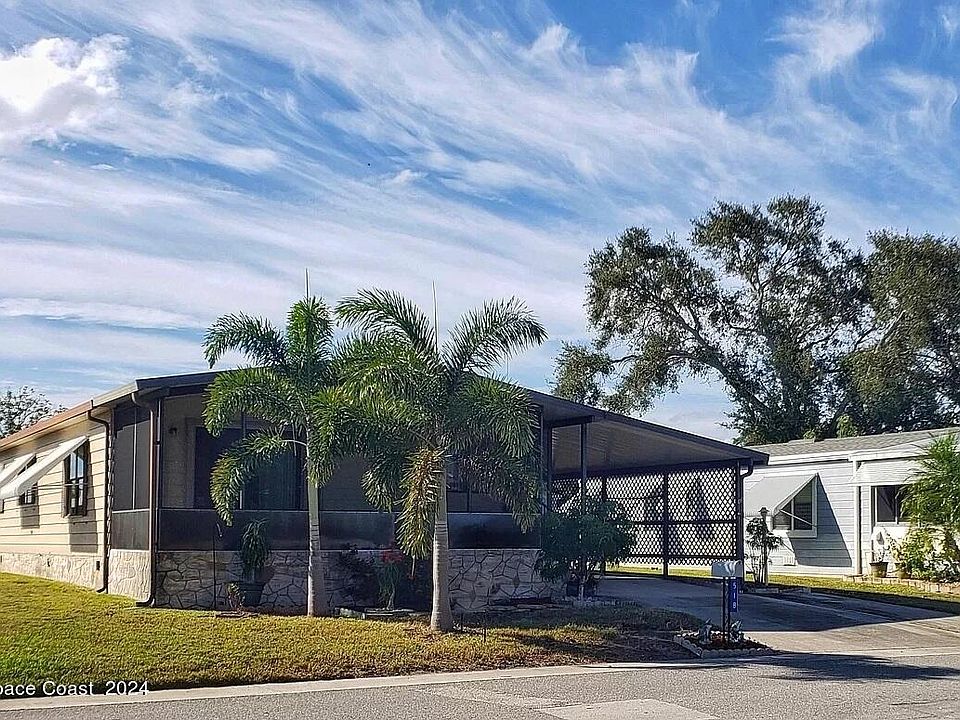 INVESTOR ALERT! Spacious 2-bedroom 2-bath home with carport in very desirable Hollywood Estates a 55+ community! Currently has a tenant in place at $1625 per month. New roof in 2024. Oversized 1 Car Carport (34x12) & Spacious Workshop / Storage Area (21x8) with Washer/Dryer. Plenty of Storage with lots of closets throughout. Large Screened-In Front Porch (23x10). Includes storm shutters. Close to shopping, restaurants, mall, movies, hospital, golfing, and Melbourne airport. Just minutes to the beach.