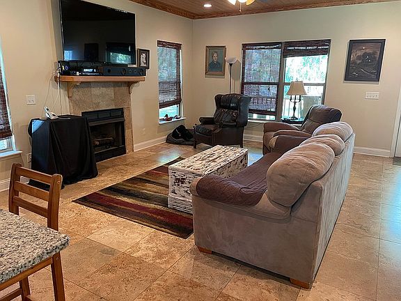 Million dollar view on the Satilla River. Piece of paradise! Beautiful 3 bedroom 2 1/2 bath home on 200 ft of high bluff deep water Satilla riverfront. New kitchen with granite countertops, stainless steel appliances, travertine tile and tongue and groove ceiling. Double pane windows, solid newer built house (2012) with foam walls/attic insulation. Shed w power/work shop. New dock with covered boathouse, floating dock, shore power and running water. Boat to Jekyll Island from your own dock! Price includes 4 lots totaling more than 12 acres. Land includes lovely 8 acre pasture/oak field (bring the horses and cows!), stocked pond with lunker bass, irrigated garden area (will include John Deere tractor w bush hog, harrow and plow for garden and wildlife food plots), great hunting area with nice box stand (plenty of wildlife to see including deer and turkey). Land also has power and water (fountain, RV hook up, etc) with lots of room and privacy. Community boat ramp and dock as well!
